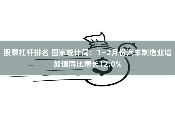 股票杠杆排名 国家统计局:1—2月份汽车制造业增加值同比增长12.0%